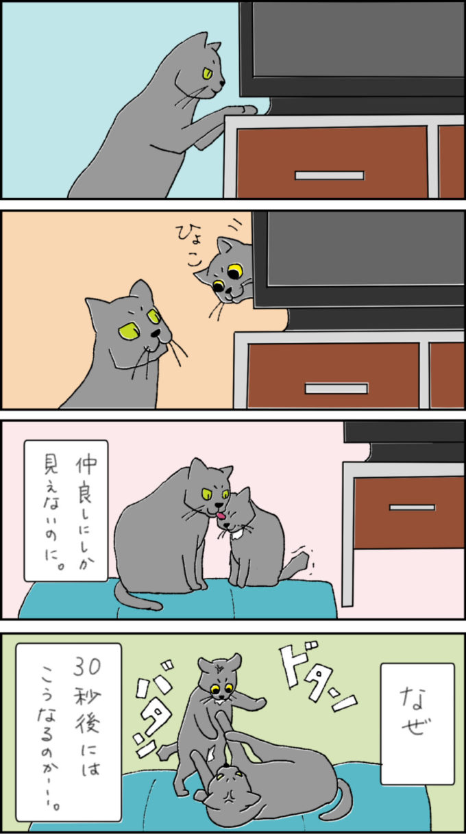 どんな経緯で。 2018/1/8 猫漫画 ご訪問ありがとうございます。 ご訪問ありがとうございます! 猫4匹とのどたばた毎日を ほのぼのと漫画にしております。 ご笑覧いただければ幸いです^^ ブログの一番最初はこちらです。 我が家の紹介はこちらです。 ツイッターで更新お知らせしてます。 Follow @kijishirotokuro 一瞬目を離した隙に始まっちゃうのです。 なぜ毎回そうなるんだろうねぇ。